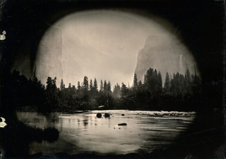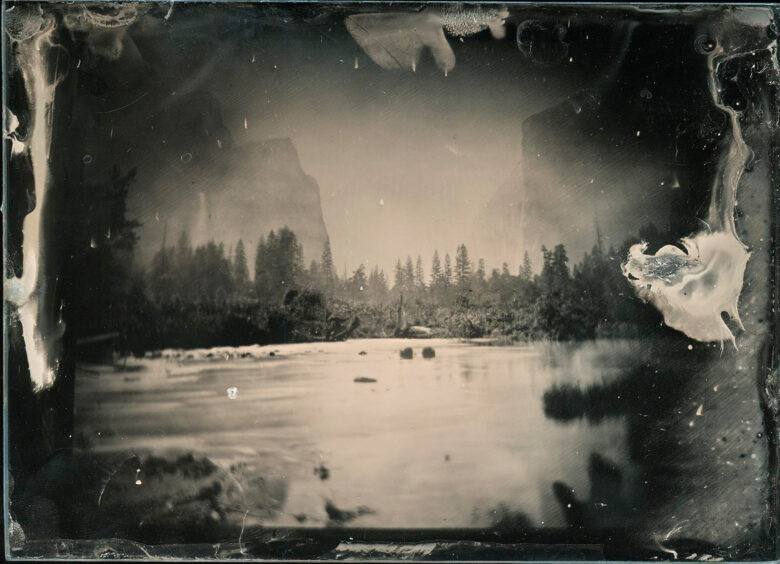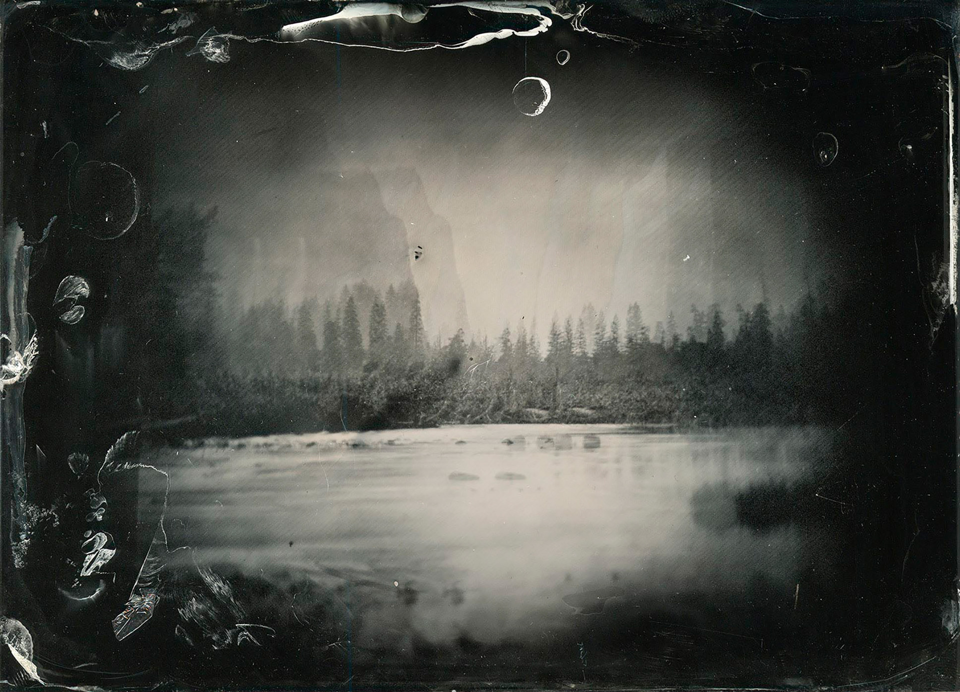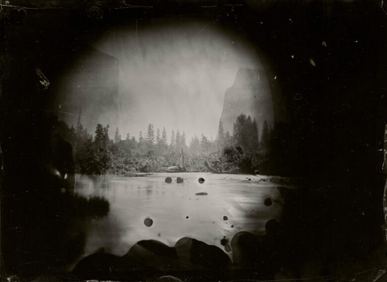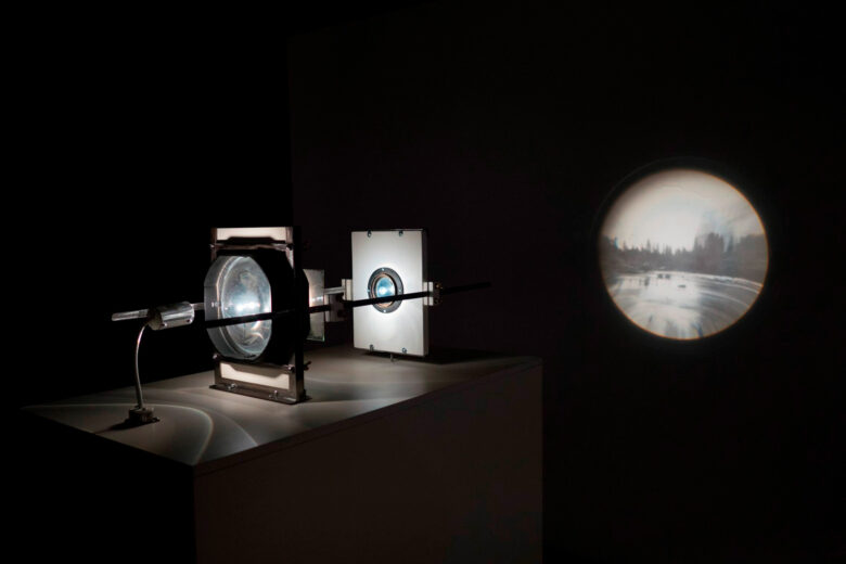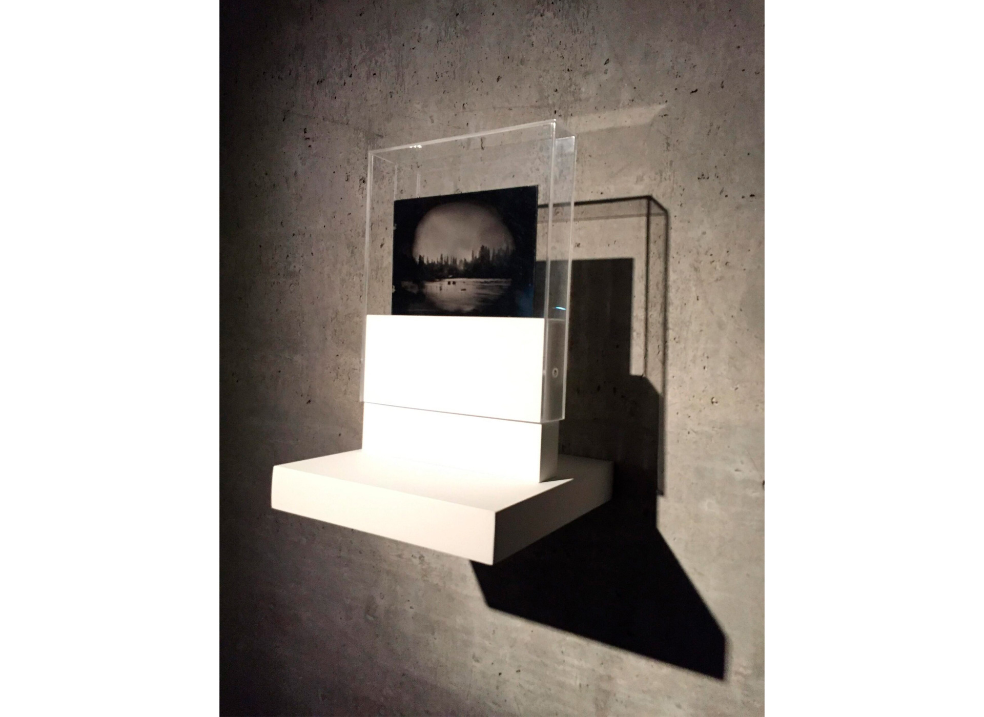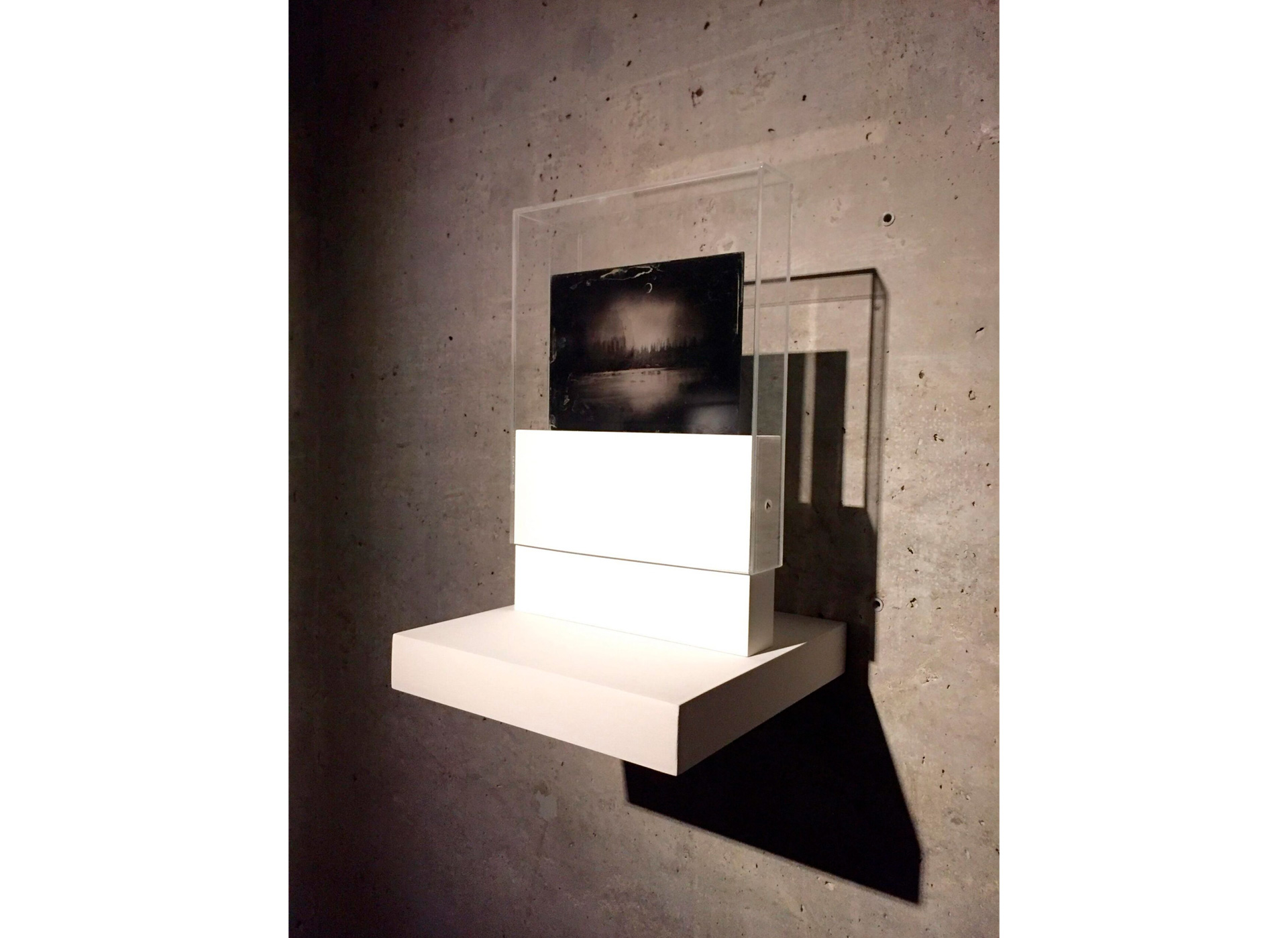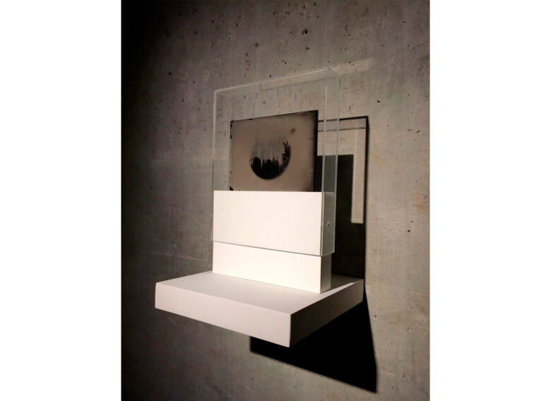 If appropriation becomes one of the systems structuring this work, repetition is the positive of this portrayed reality. Both techniques are embodied in glass plates using wet-collodion, or faux daguerreotypes, ambrotypes, gelatin silver, or postcard processes, or in light projections. The effort of prioritizing photographic processes —over the resulting image— links Galban’s work to that of a group of contemporary artists, whose main questioning lies in image fixing process and photographic support.