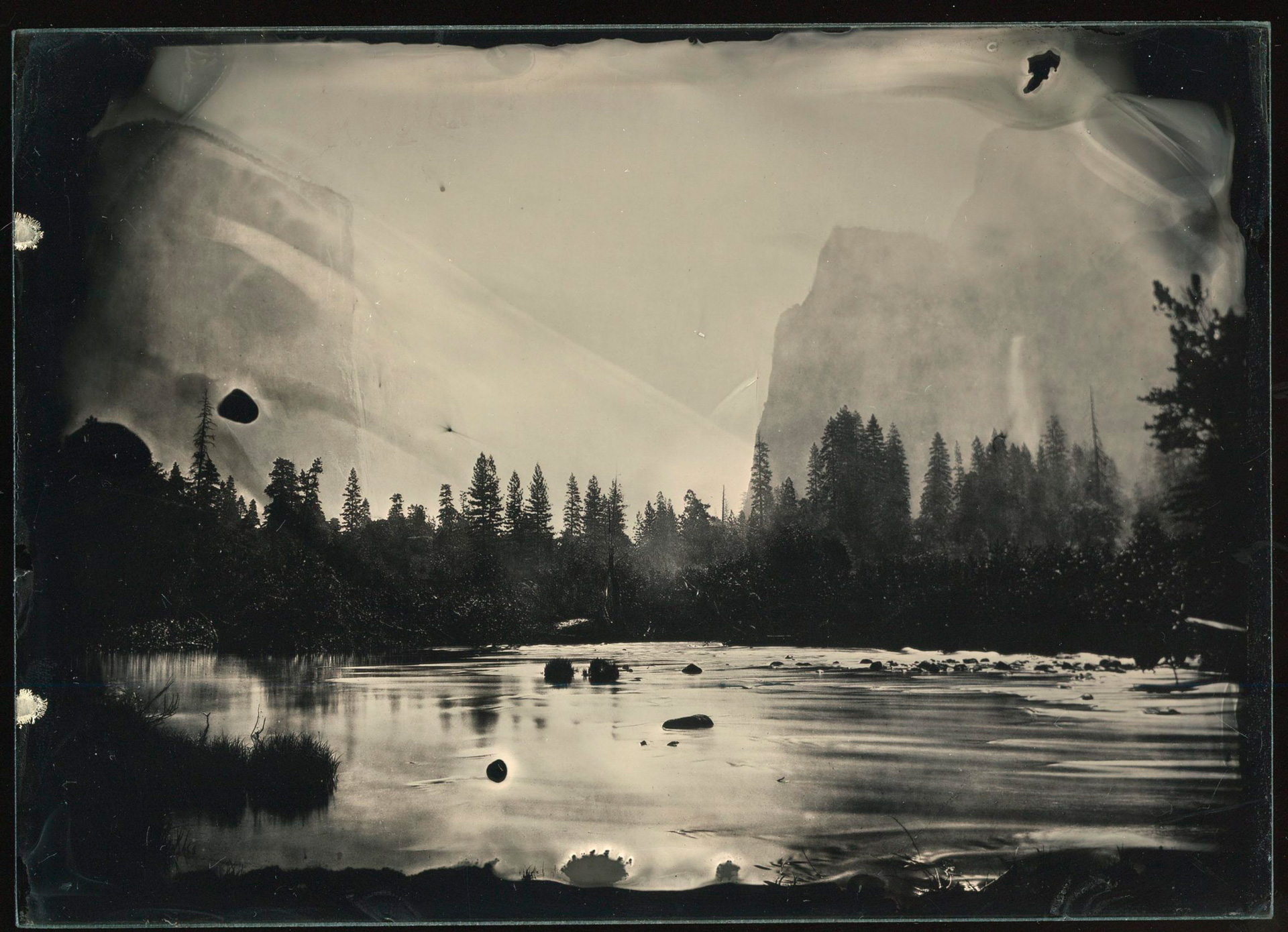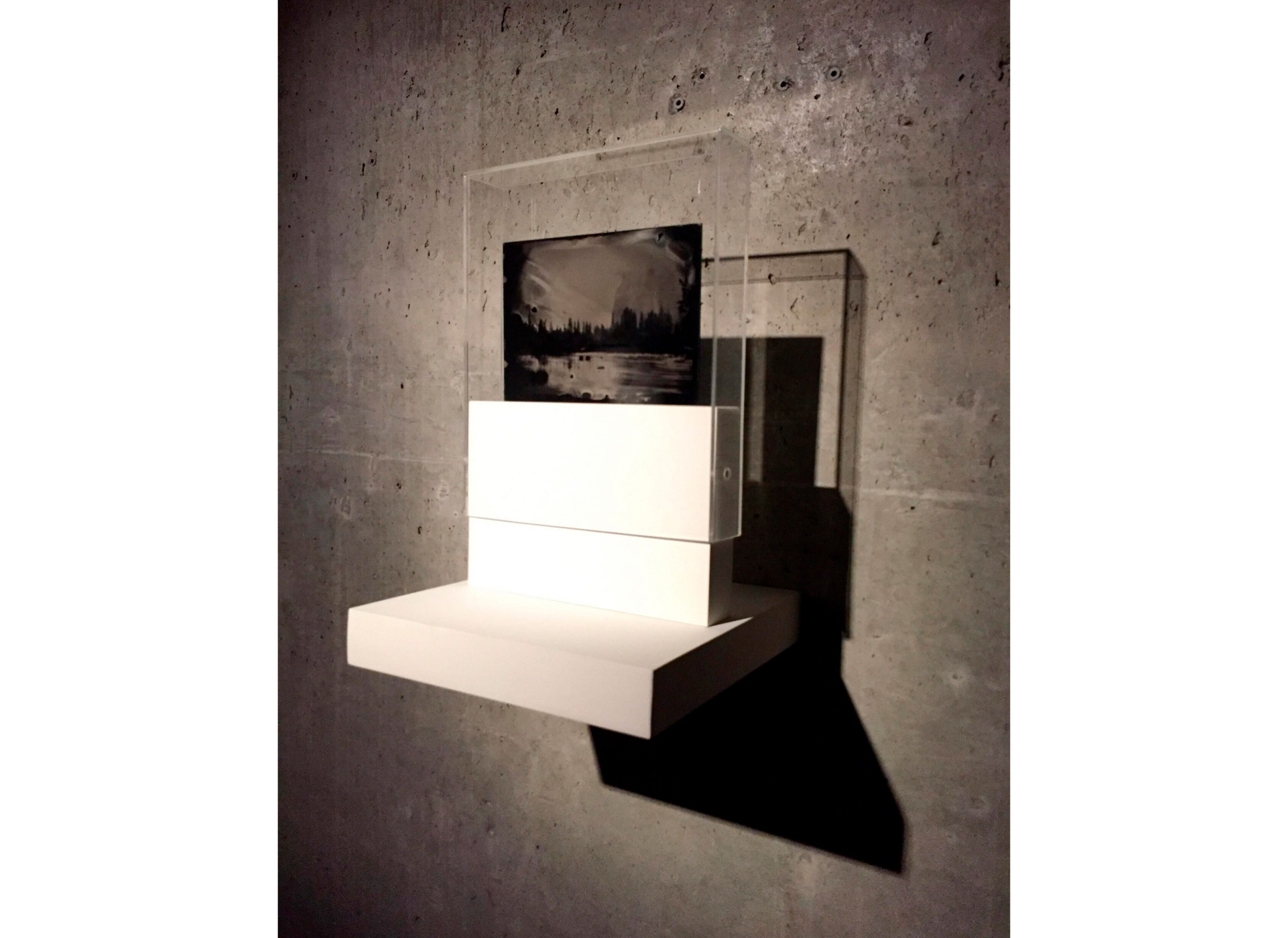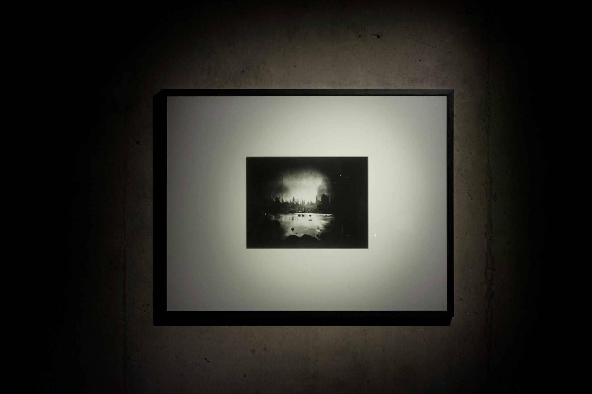 It is Valley of the Yosemite, From Rocky Ford (1872) by Eadweard J. Muybridge which Ms. Galban uses as the object of the appropriation technique. It is here where the origin of that everlasting return which the artist suggests becomes visible. Using a digital image as a starting-point, Ms. Galban chooses the framing, dissects the supports, and dissolves the image implementing the history of photographic device technē and gives it her own personal take. The glass plates placed in a contiguous and juxtaposed way take center stage in her work, stressing the round and differential account which deviates from related modernity, and helps wonder about how photographic narrative can be deconstructed, without progressive lineal and continuous mechanisms.