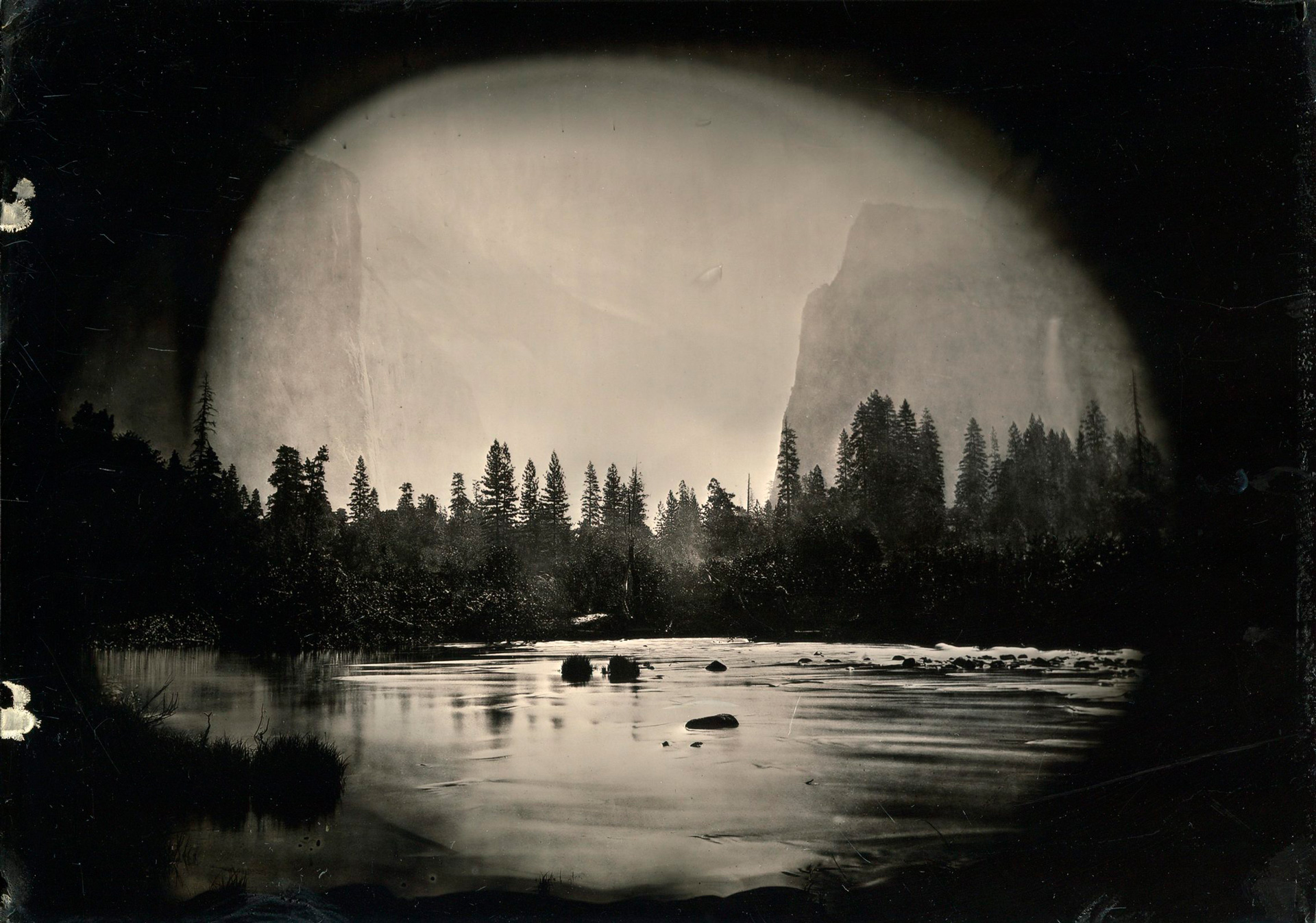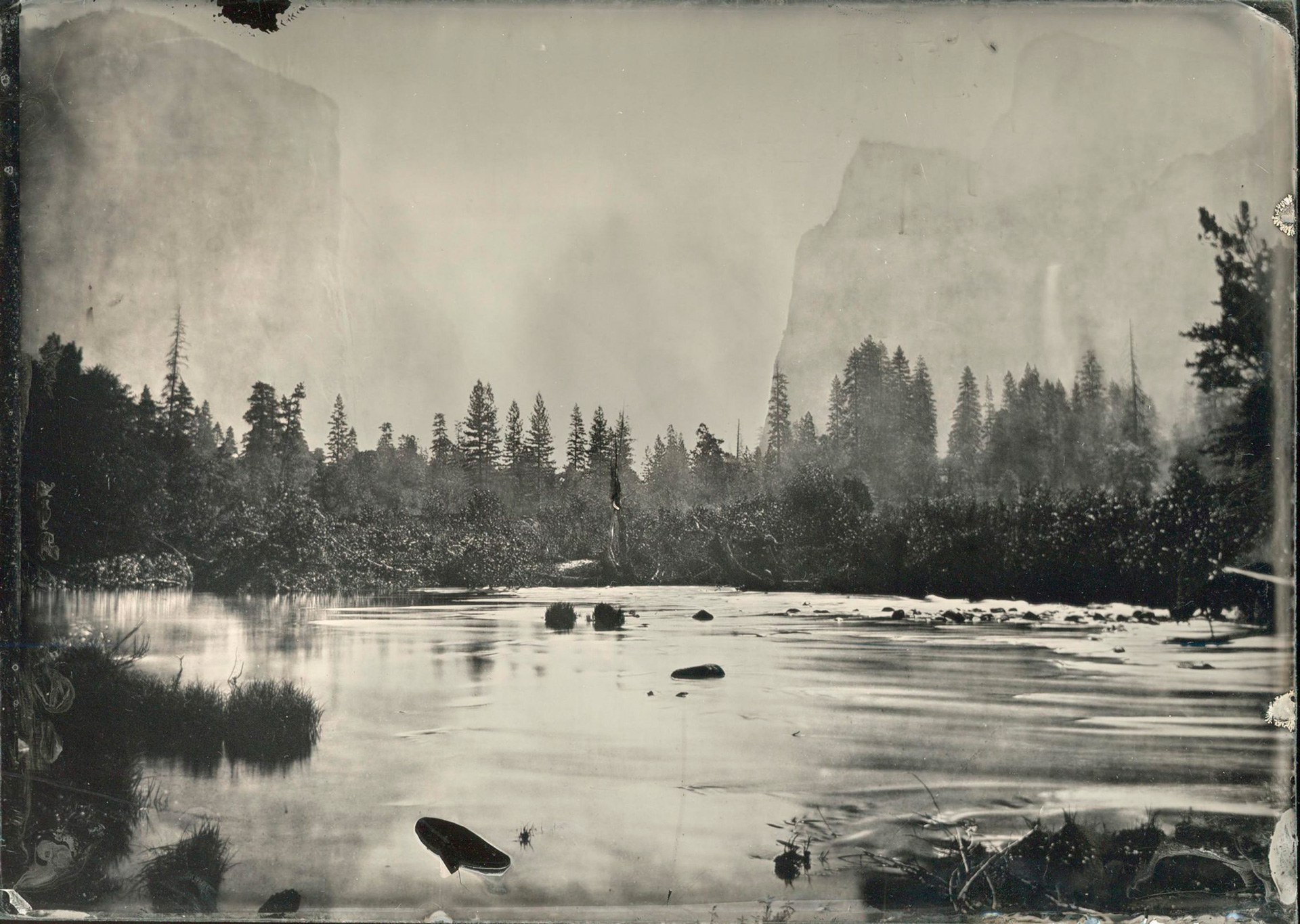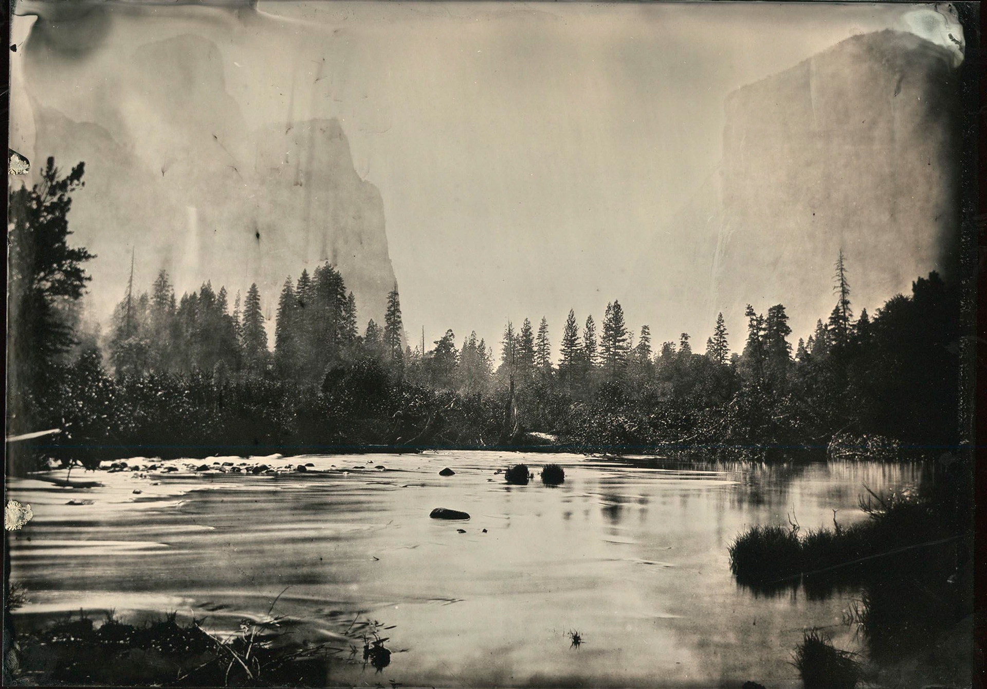 It is Valley of the Yosemite, From Rocky Ford (1872) by Eadweard J. Muybridge which Ms. Galban uses as the object of the appropriation technique. It is here where the origin of that everlasting return which the artist suggests becomes visible. Using a digital image as a starting-point, Ms. Galban chooses the framing, dissects the supports, and dissolves the image implementing the history of photographic device technē and gives it her own personal take. The glass plates placed in a contiguous and juxtaposed way take center stage in her work, stressing the round and differential account which deviates from related modernity, and helps wonder about how photographic narrative can be deconstructed, without progressive lineal and continuous mechanisms.